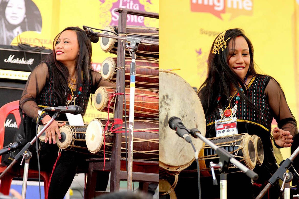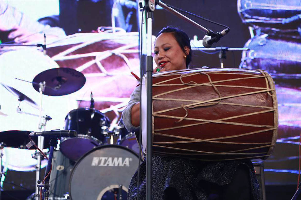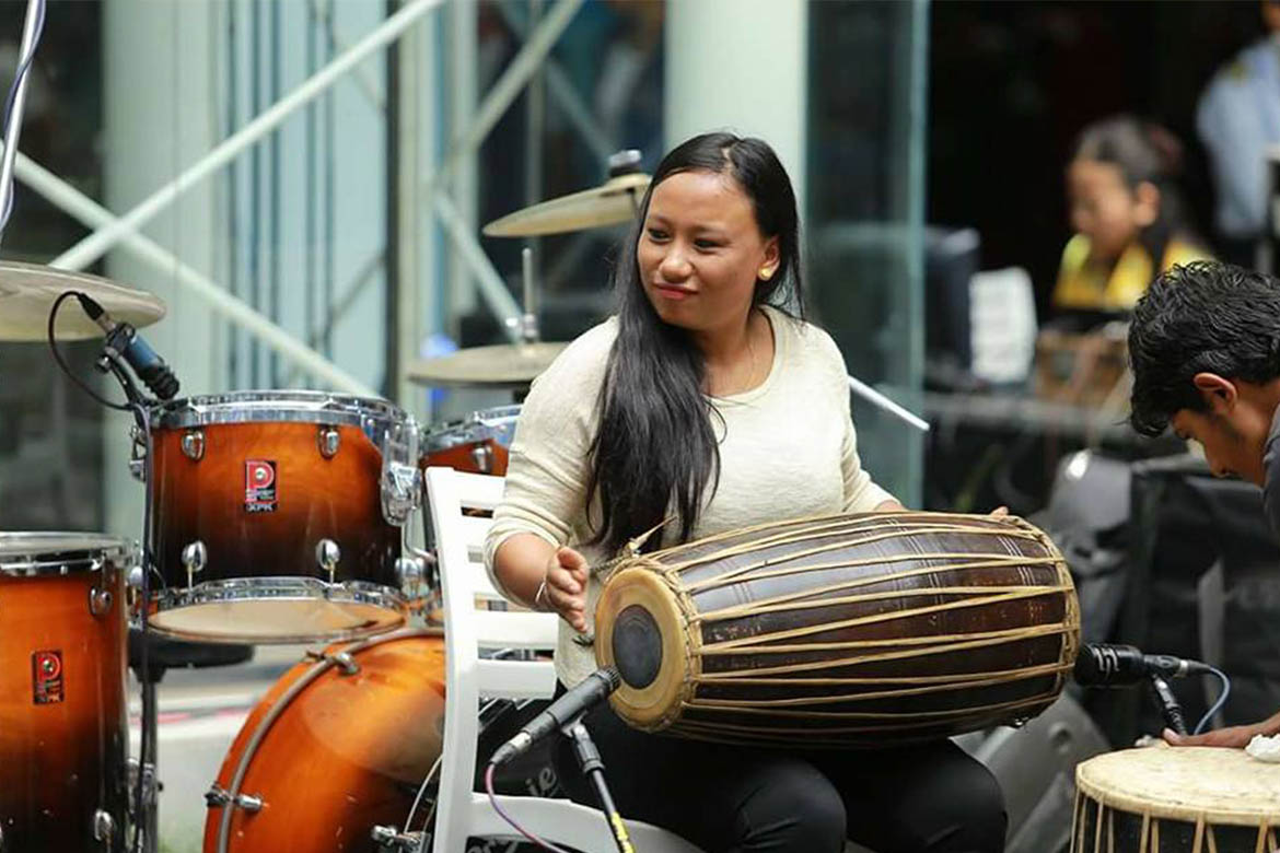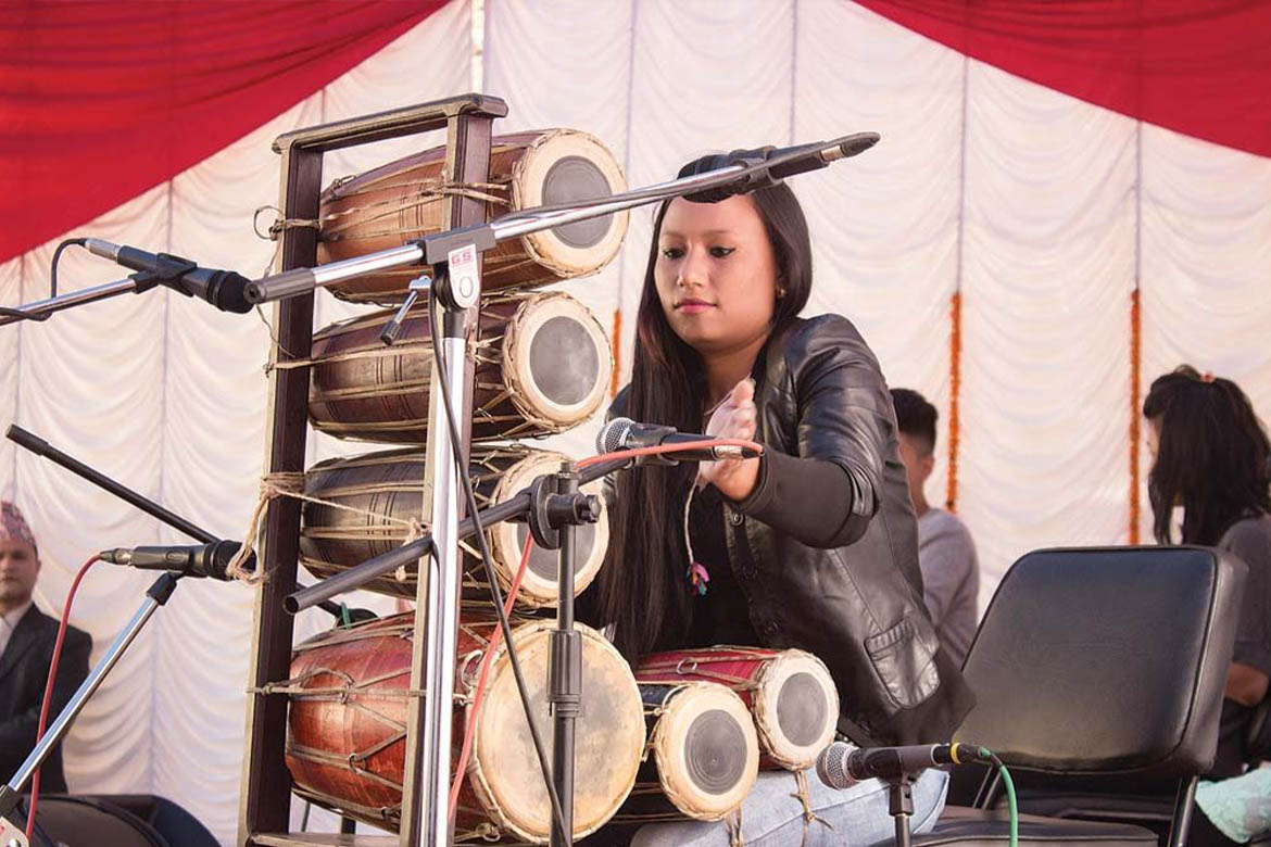 Namaste! I am Sarada Dongol. I play Nepali instruments and enjoy playing the Madal the most.I started my musical journey since early school days. Today I have played 10 madals solo at once in a stage.My dream is to play 32 Madal solo on stage someday. In the meantime, I encourage other women to start their own musical journey and play musical instruments.